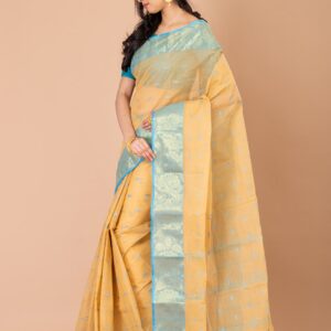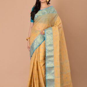 ₹3,000.00Beige & Sky blue Ethnics Motifs Tant Saree.