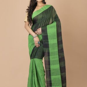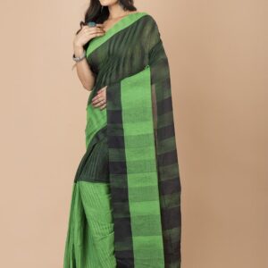 Black & Green Cotton handloom saree.