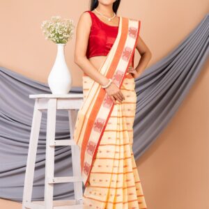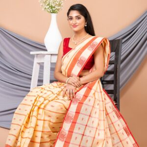 Beige & Red cotton Jamdani Saree