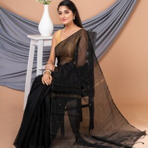 Bengali, Black, Culture and Tradition, Diwali, Durga Puja, Festival, Handloom, Handloom Sarees, LAA CALCUTTA GARAGE, NEW ARRIVALs, Occasion, Pujo/Puja, Saree, Silk