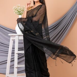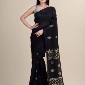 Black & Golden Linen saree