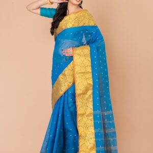 Bengali, Blue, Cotton, Culture and Tradition, Diwali, Durga Puja, Eid, LAA CALCUTTA GARAGE, NEW ARRIVALs, Occasion, Pujo/Puja, Reception, Sangeet/Engagement, Saree, Tant Sarees, Wedding, yellow