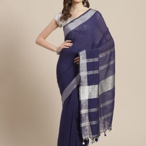 Blue & Navy blue Cotton handloom saree.