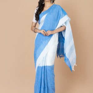 Sky Blue & White Cotton handloom saree