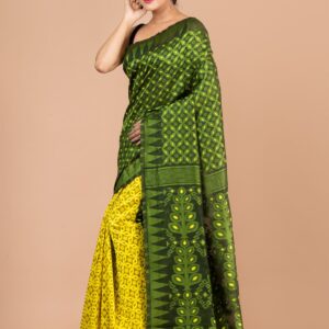 Yellow & Blue pure cotton Dhakai Jamdani Saree.
