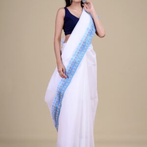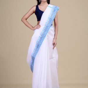 Bengali, Blue, Cotton, Culture and Tradition, Festival, Jamdani, Jamdani Sarees, NEW ARRIVALs, Saree, White