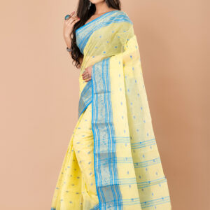 Bengali, Cotton, Culture and Tradition, Diwali, Durga Puja, Eid, LAA CALCUTTA GARAGE, Multi, NEW ARRIVALs, Occasion, Pujo/Puja, Reception, Sangeet/Engagement, Saree, Sea green, Tant Sarees, Wedding, yellow