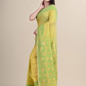 Yellow & Green pure cotton Dhakai Jamdani Saree.