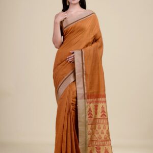 ₹2,220.00Yellow & Golden tribal printed cotton handloom saree with blouse material