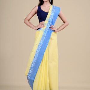 Bengali, Blue, Color, Cotton, Fabric, Festival, NEW ARRIVALs, Saree, Tant Sarees, yellow