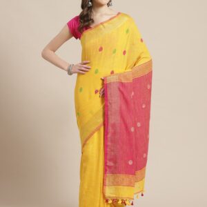 Yellow & Pink silk handloom Saree
