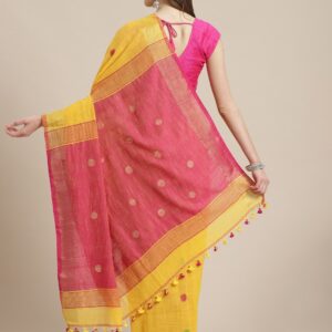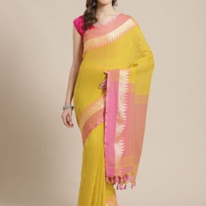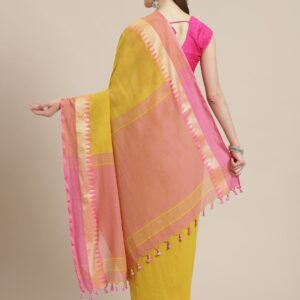 Yellow & Pink Cotton handloom saree.