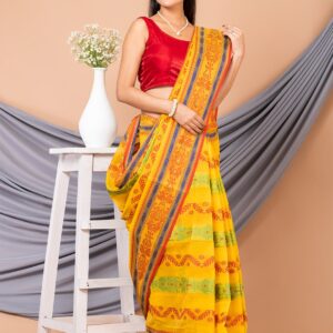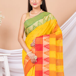 Yellow & Multi pure cotton tant saree