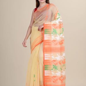 Yellow & Orange floral design cotton Jamdani Saree.