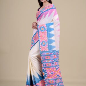 White & Multi cotton silk handloom saree.