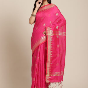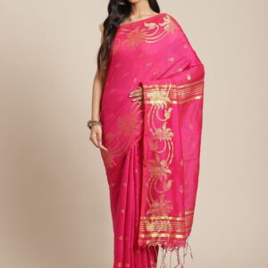 Bengali, Color, Cotton Silk, Fabric, Festival, Golden, Handloom, Handloom Sarees, NEW ARRIVALs, Pink, Saree