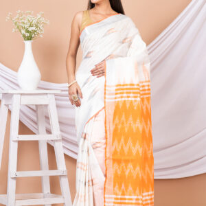 Orange & White cotton silk handloom saree