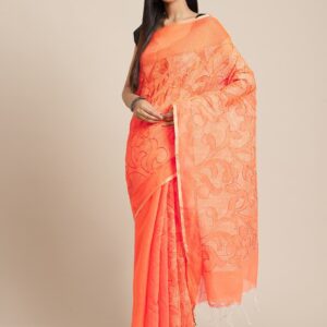Bengali, Cotton Silk, Culture and Tradition, Diwali, Durga Puja, Eid, Festival, Handloom, Handloom Sarees, LAA CALCUTTA GARAGE, NEW ARRIVALs, Occasion, Orange, Saree, Silver