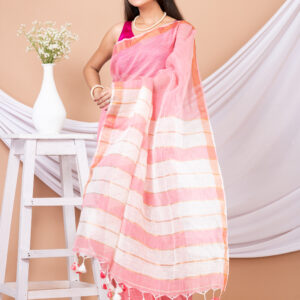 Red & White Linen saree