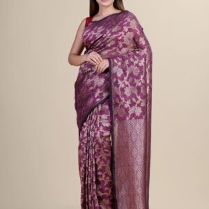 Purple & Golden Linen saree