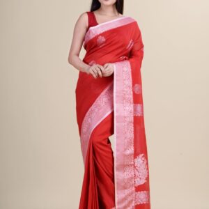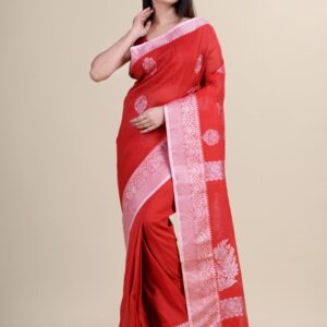 Bengali, Collection, Culture and Tradition, Diwali, Durga Puja, Eid, Festival, LAA CALCUTTA GARAGE, Linen, Linen sarees, NEW ARRIVALs, Occasion, Pujo/Puja, Reception, Red, Saree, Silver