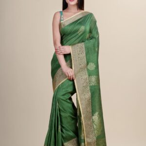 Sea Green & Golden Linen saree