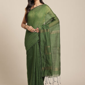 ₹2,300.00Green & Golden zari cotton silk handloom Saree