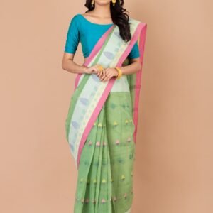 Bengali, Cotton, Culture and Tradition, Diwali, Durga Puja, Eid, LAA CALCUTTA GARAGE, Multi, NEW ARRIVALs, Occasion, Pista green, Pujo/Puja, Reception, Sangeet/Engagement, Saree, Tant Sarees, Wedding, yellow
