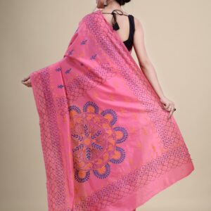 Acrylic, Bengali, Blue, Fabric, Festival, Kantha stitch Sarees, NEW ARRIVALs, Pink, Saree