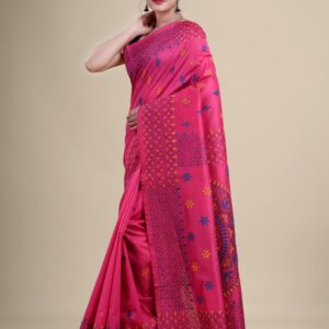 Acrylic, Bengali, Blue, Color, Fabric, Festival, Kantha stitch Sarees, NEW ARRIVALs, Pink, Saree