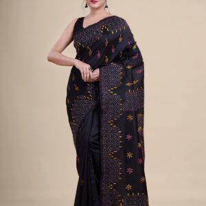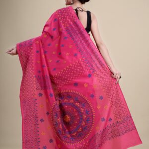 Acrylic, Bengali, Black, Color, Fabric, Festival, Kantha stitch Sarees, NEW ARRIVALs, Pink, Saree