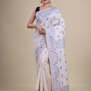OFF-WHITE & BLUE KATHA STITCH Saree.