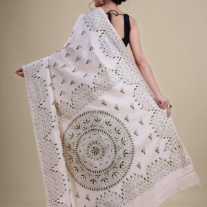 OFF-WHITE & GREEN KATHA STITCH Saree.