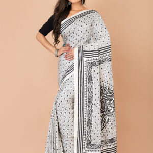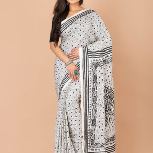Bengali, Black, Festival, Kantha stitch Sarees, NEW ARRIVALs, Silk, White
