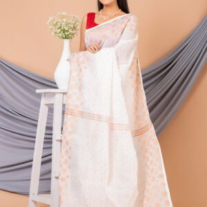 Bengali, Culture and Tradition, Diwali, Durga Puja, Festival, Golden, Handloom, Handloom Sarees, LAA CALCUTTA GARAGE, NEW ARRIVALs, Occasion, Pujo/Puja, Saree, Silk, White