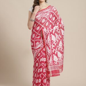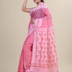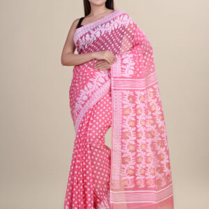 Pink & White floral design cotton Dhakai Jamdani Saree.