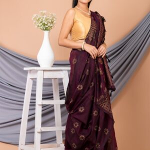 Bengali, Cotton Silk, Culture and Tradition, Diwali, Durga Puja, Festival, Golden, Handloom, Handloom Sarees, LAA CALCUTTA GARAGE, NEW ARRIVALs, Occasion, Pujo/Puja, Purple, Saree