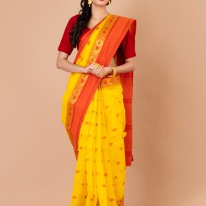 Bengali, Cotton, Culture and Tradition, Diwali, Durga Puja, Eid, LAA CALCUTTA GARAGE, NEW ARRIVALs, Occasion, Pujo/Puja, Reception, Red, Sangeet/Engagement, Saree, Tant Sarees, Wedding, yellow