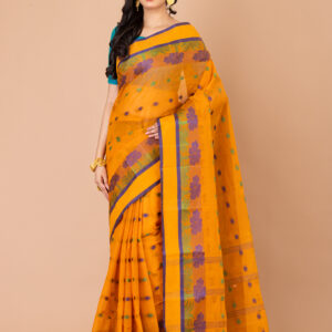 Mustard Yellow & Blue Tant Saree