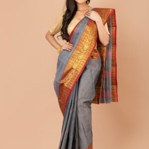 • Red & Golden Floral woven design pure cotton tant saree