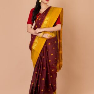 Maroon & Yellow Tant Saree