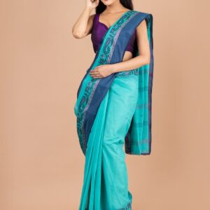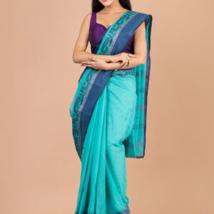 • Sea green & Blue pure cotton woven design tant saree