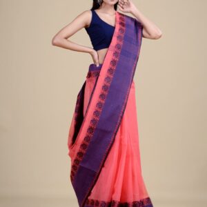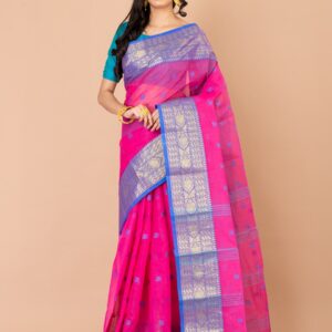 PINK & BLUE TANT Cotton Saree.