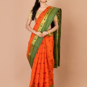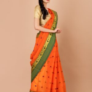 Orange & Green paisley design pure cotton tant Saree