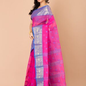 Bengali, Blue, Cotton, Culture and Tradition, NEW ARRIVALs, Occasion, Pink, Pujo/Puja, Saree, Tant Sarees