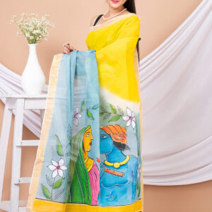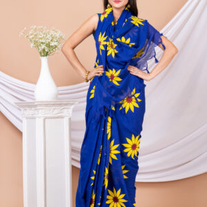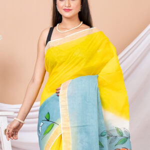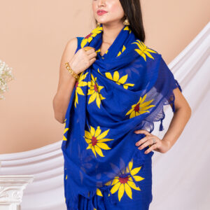Blue & Yellow Pure cotton Sunflower design Handloom Saree