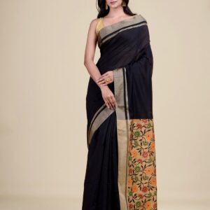 Bengali, Black, Cotton, Festival, Handloom, Handloom Sarees, NEW ARRIVALs, Saree