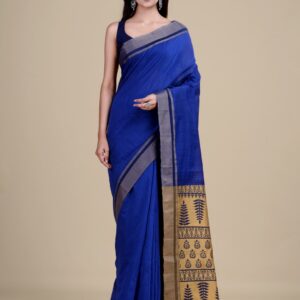 Blue & Golden cotton handloom saree with blouse material.