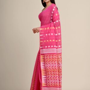 Pink & Multi pure cotton ethnic motifs jamdani saree