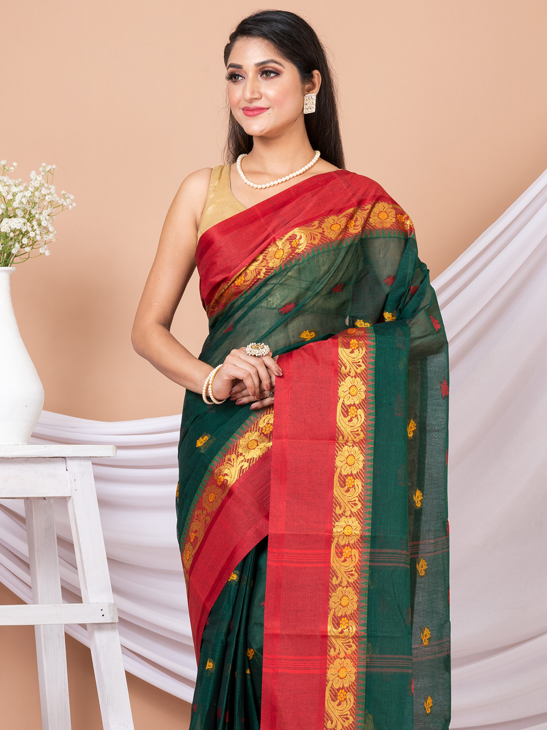 We are a saree brand from Kolkata. We bring you the latest designs of Bengal cotton handlooms and Bengal Tant sarees. You can wear our collection of sarees for weddings and any Bengali festival. Our Handloom Cotton, Jamdani or Tant sarees must be dry washed after use.